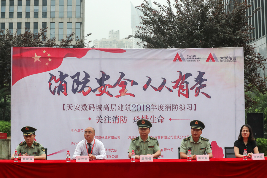6月21日下午,大渡口区消防支队联合深圳天安智慧园区运营有限公司在天安数码城举行“消防安全、人人有责”为主题的高层建筑消防逃生救援演习。旨在加强企业员工防火意识、逃生自救能力,以及进一步掌握初期火灾处置流程和处置突发事件过程中协调配合能力。演习期间,消防支队共出动6辆消防车、42名官兵,疏散150名被困人员,防火处处长唐明建、司令部协理员李志良出席活动。